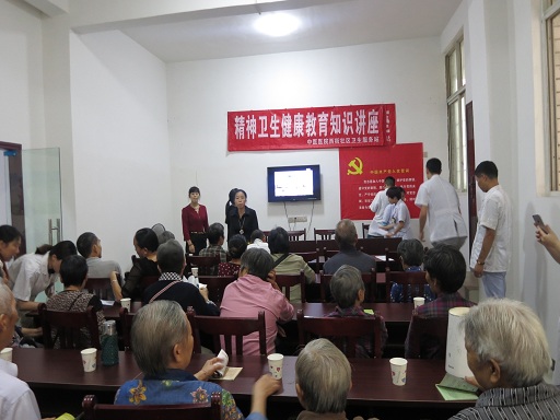 为提高辖区居民精神卫生知识水平,促进居民精神卫生健康,我院社区卫生服务站工作人员姚艾伶、刘馨、林虎松等于2017年6月2日下午到东风路社区开展精神卫生健康知识讲座活动。通过此次精神卫生健康知识讲座,提高了辖区居民对常见重型精神疾病——精神分裂症的认识。