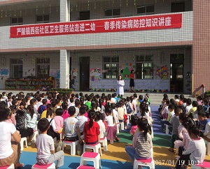 2017/04/21为防止春季传染病的传播,呵护学生健康,2017年4月19日,由西街社区卫生服务站工作人员林虎松,曾维利,何晓静,王韵佳一行4人,在威远县第二幼儿园开展了预防春季传染病的宣传活动。...详细>> -