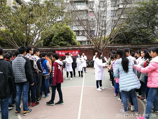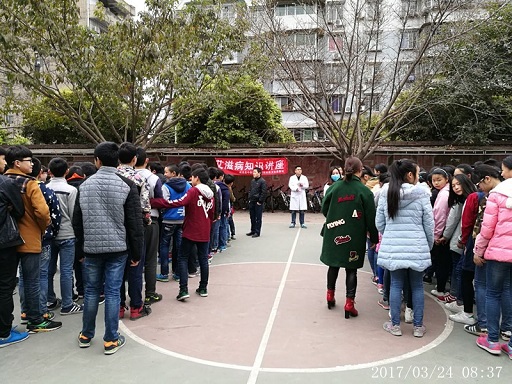 2017年3月24日,在医院统一部署下,由西街社区卫生服务站站长王强带队,一行6人,在威远县自强中学举办“艾滋病防治知识”宣传活动,此次活动主题是“防治艾滋病,人人有责;构建和谐社会,全民受益。”。